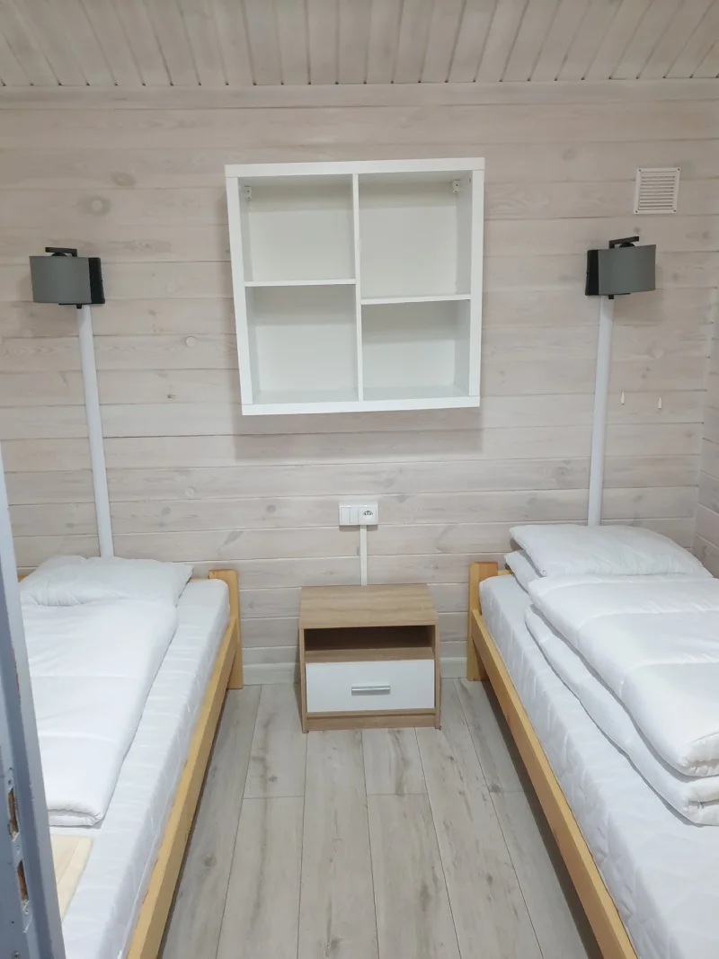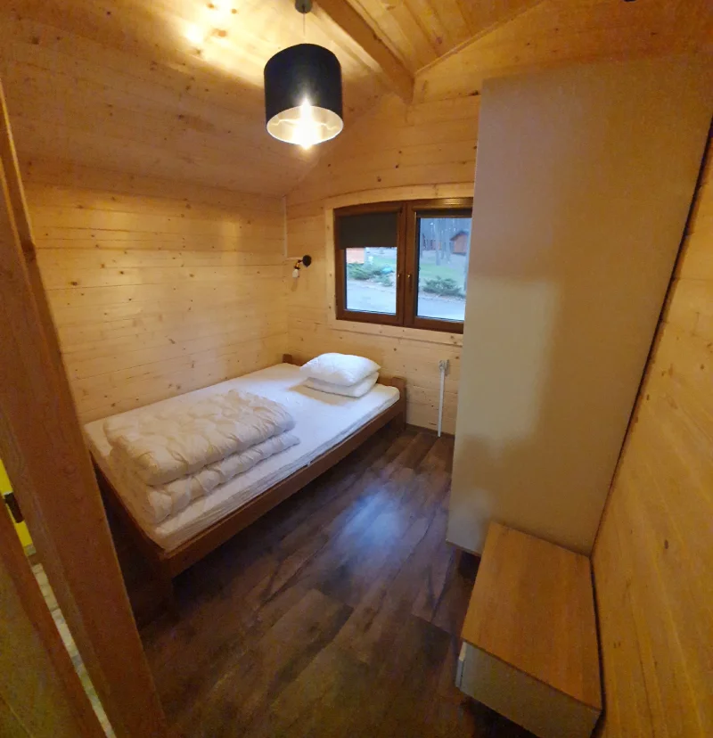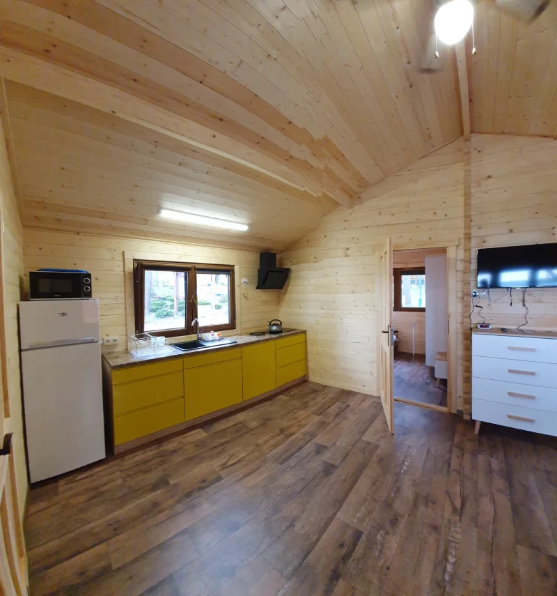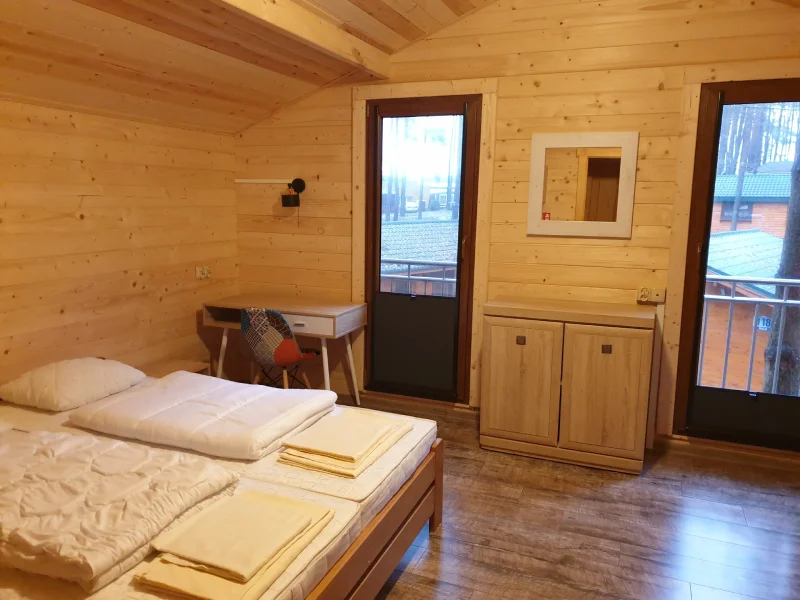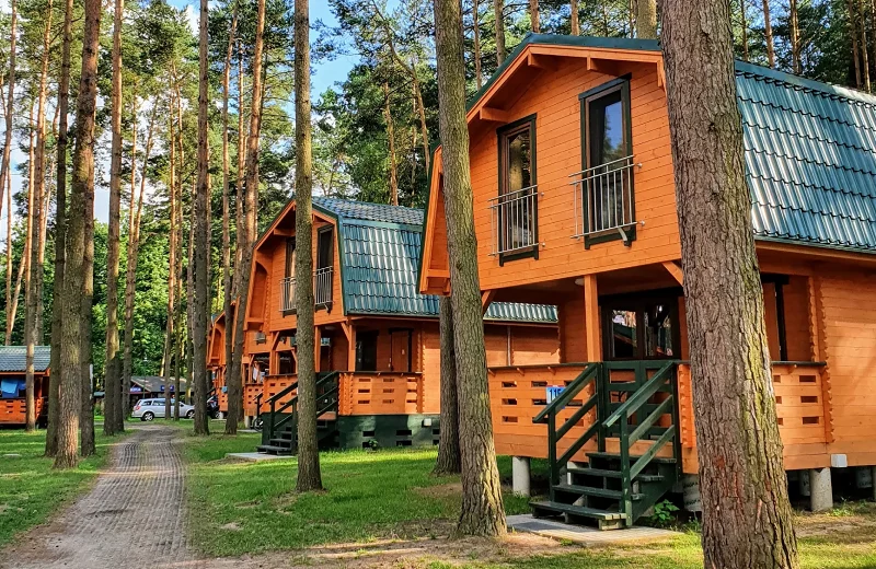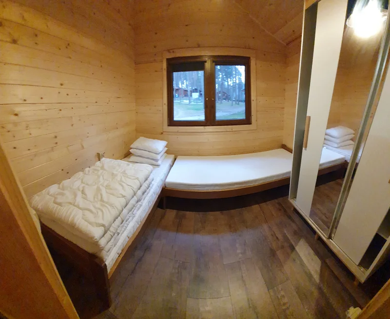 Centrā ir 130 komfortablas koka mājiņas ar terasi, virtuvi un pilnībā aprīkotu sanitāro mezglu, 2–8 cilvēkiem, kopā ap 500 vietām. Mājiņas atrodas priežu mežā, lielākajai daļai ir skats uz ezeru. Papildus funkcionālajam un estētiskajam aprīkojumam mājiņās jūtama patīkama koka smarža.