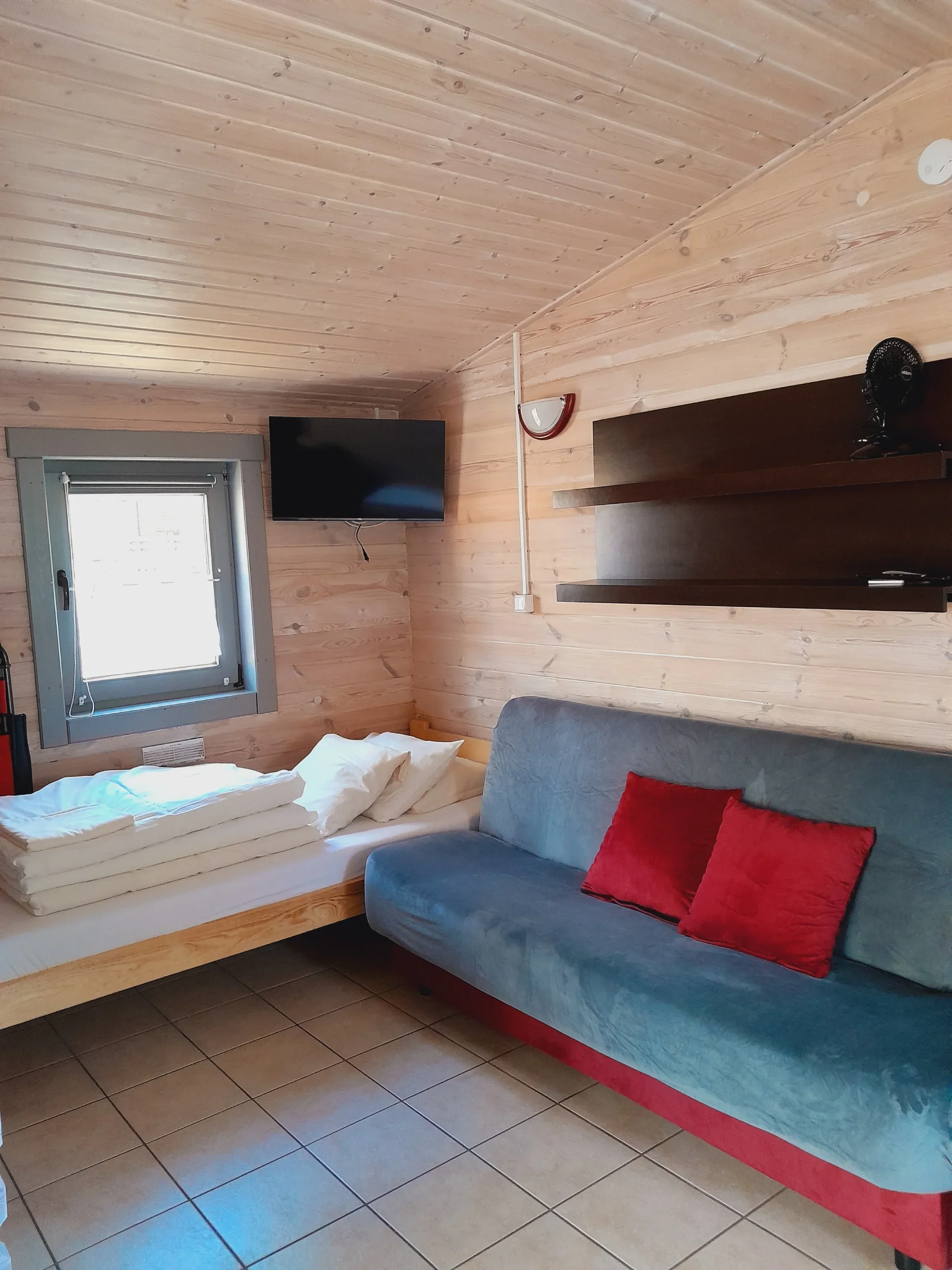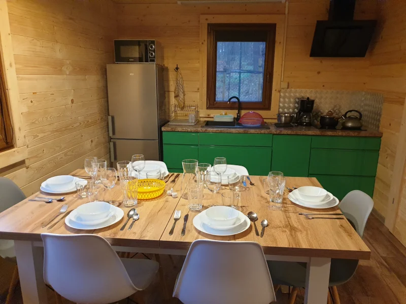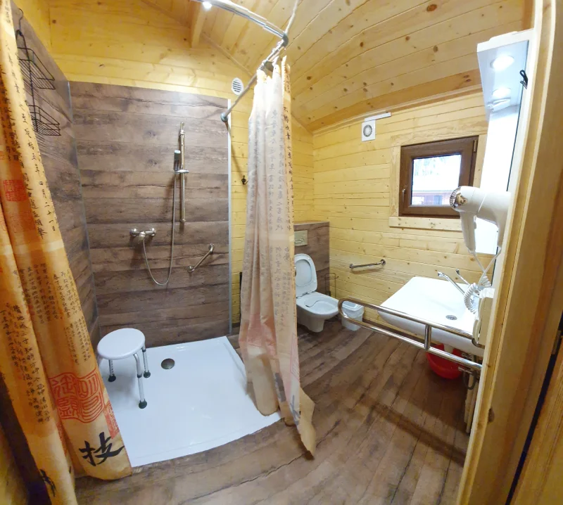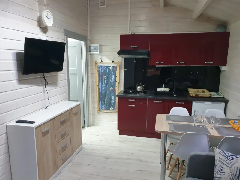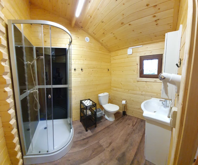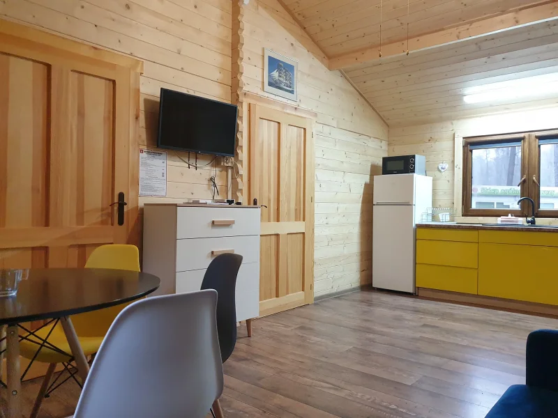 Centrā ir 130 komfortablas koka mājiņas ar terasi, virtuvi un pilnībā aprīkotu sanitāro mezglu, 2–8 cilvēkiem, kopā ap 500 vietām. Mājiņas atrodas priežu mežā, lielākajai daļai ir skats uz ezeru. Papildus funkcionālajam un estētiskajam aprīkojumam mājiņās jūtama patīkama koka smarža.